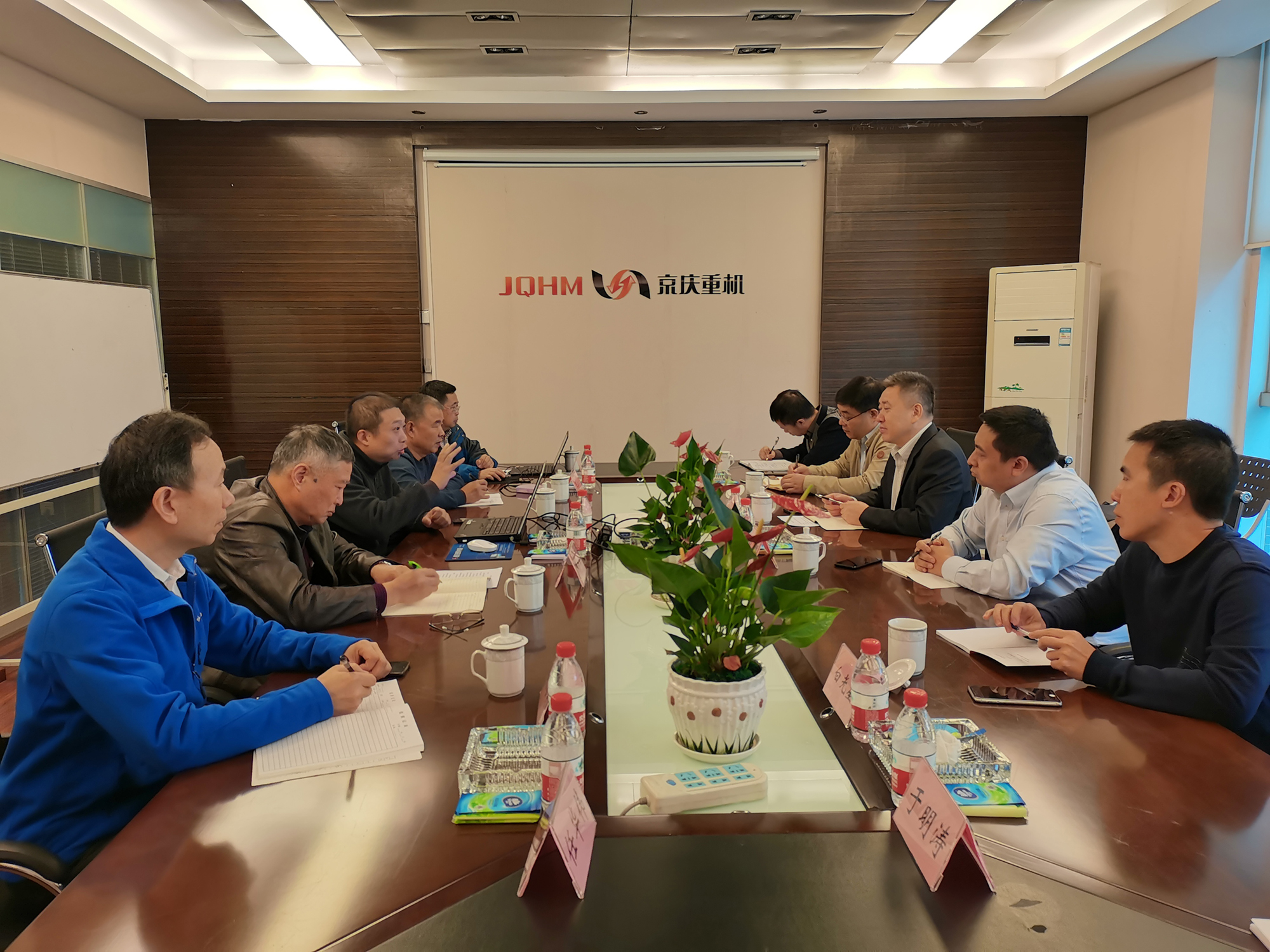 2021年10月21日,宝武资源开发中心副总经理汪新亭带领宝武资源资源开发中心投资总监朱进勇和资源开发中心高级经理白光星、盘勇及武钢中非公司总经理白朋,到重庆京庆重型机械股份有限公司进行干式磨选中试及生产基地考查,并进行了技术和商务交流。京庆公司总经理张珂及其高管、齐鲁财金副总经理秦庆国、环磨科技董事长武文建及高管专家团队一起就干式磨选工艺技术及项目商务合作事宜与宝武资源一行进行了深入交流。会议由张珂总经理对利比里亚邦矿干式磨选工艺技术及初步合作方案进行介绍,双方与会领导及专家进行广泛而深入的沟通及讨论,达成很多共识:联合开展技术研究、共同推进技术应用、签订保密协议、统一经营理念。
