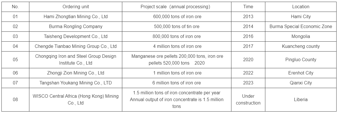 | 05 | Chongqing Iron and Steel Group Design Institute Co., Ltd | Manganese ore pellets 200,000 tons, iron ore pellets 520,000 tons 2020 | 2020 | Pingluo County |